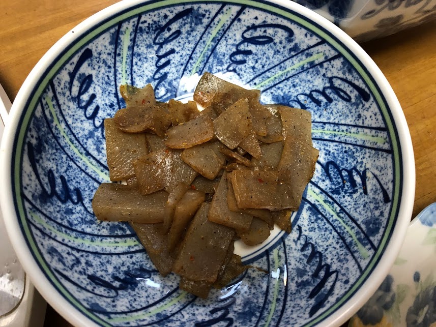 豚汁に入れたこんにゃくの残りでピリ辛きんぴらこんにゃく。