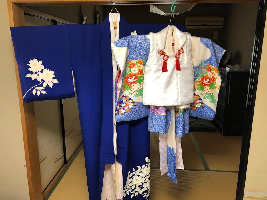 pパパのお父さんは私の青い着物を素晴らしく上手に褒めてくださいました。