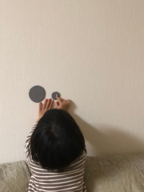 壁には「ひっつき虫」をつかって貼ったので、自由にとったり貼ったりすることが可能。