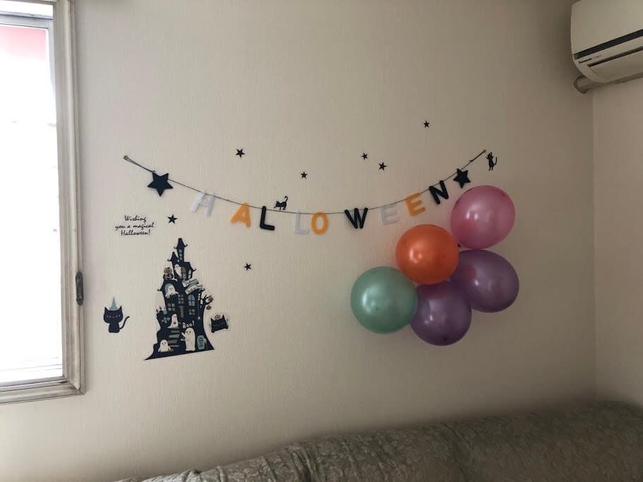 ダイソーで買ったものでちょこっとハロウィンな壁に♪
