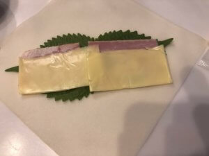 中心に大葉を置く