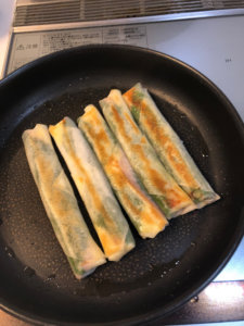 焼いてるとチーズが出てくるので端っこは折りたたむ方がいいです。