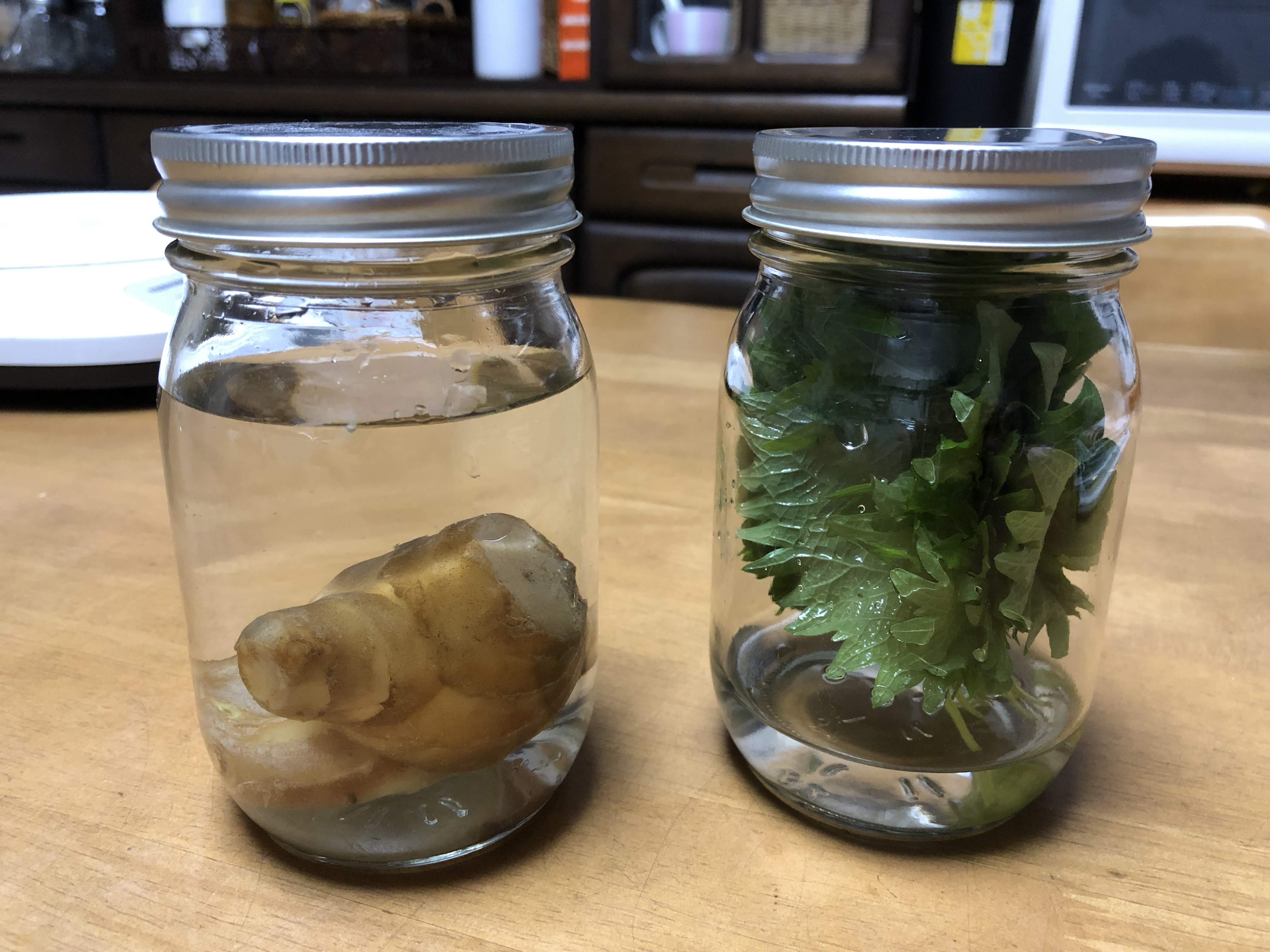 土生姜は瓶に水を入れたものに放り込んでおくと長持ちするよ〜♪( ´▽`)