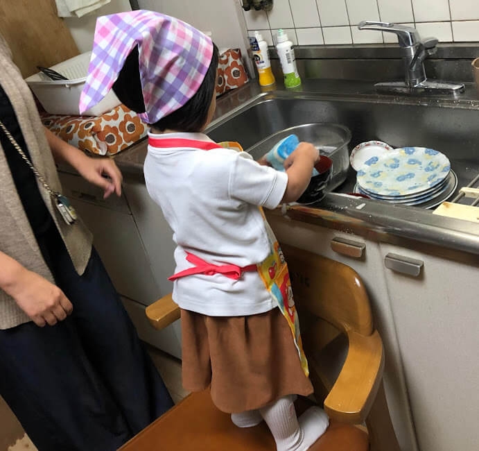 食器洗いのお手伝い♪上手にできた! ぴよぴよだより X Facebook はてブ LINE コピー 2019.12.132019.12.14記事内に広告が含まれています。なんでも自分がやりたいお年頃。 今日の「やる〜〜!!」は食器洗い。食器洗い機がないから・・大昔にかった床置き型の食器洗い機。 ずっと前に壊れてたんだけれど、たくさんの洗い物をすることがなくなったから買い替えしてないから手洗いなのよね。 ピヨママがお片づけして帰ってくれるんだけれど、この日エプロンと三角布を被って晩御飯を食べに来たぴよ。食器を洗う!宣言・・・。ママが横でうまくフォローしながら洗い物をしてくれました。大変よくできました💮