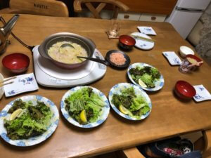 白菜のお鍋のスープは、八重山そばのスープが一袋余っていたので、それと中華スープ(味覇)を足しました。