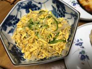 - 錦糸卵たっぷりの春雨サラダ