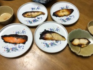 味噌漬けのお魚はお歳暮にいただいもの。「浜町焼き」