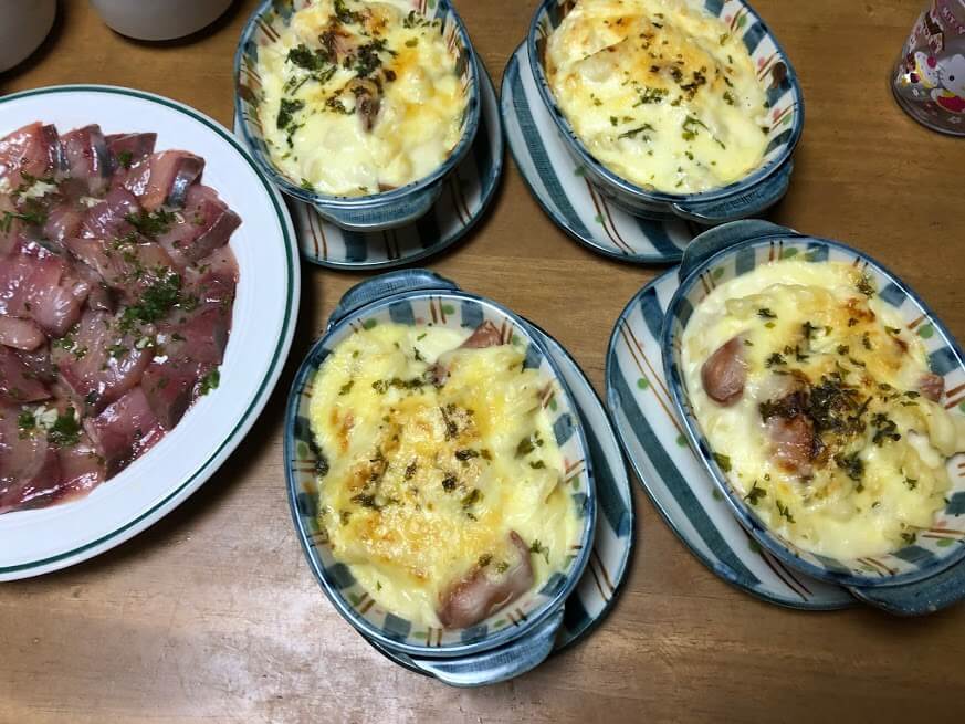 グラタンはいつもバターと小麦粉と牛乳でつくるのに、業務用スーパーでグラタンやホワイトシチューができる粉があったので使って見たら、量加減が難しく、硬めのグラタンになっちゃった・・・。