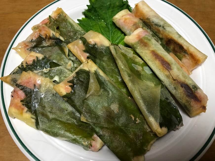 春巻きはスライスチーズが足らなくなってしまったので、細いのはベーコンと青しそだけ〜。