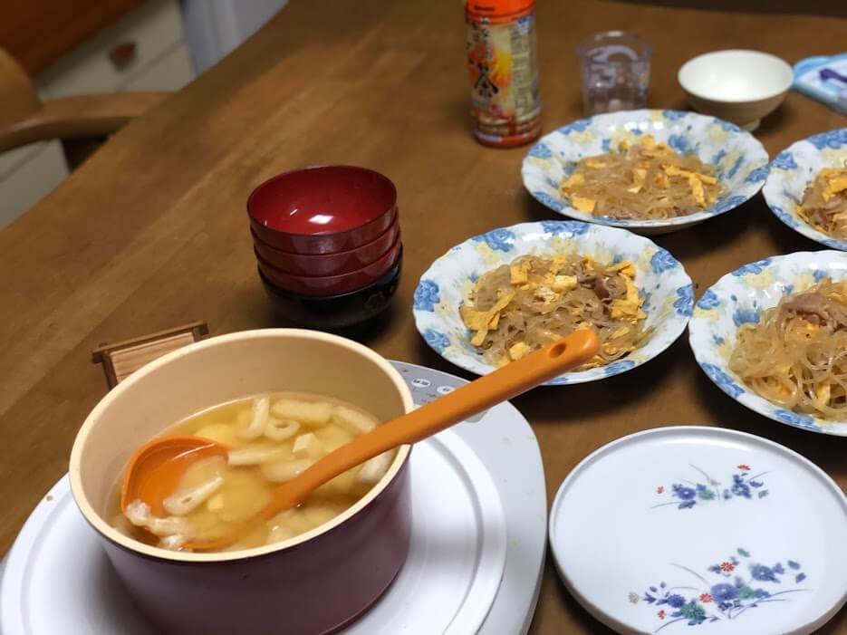 というわけでいきなり晩御飯当番をキャンセルすろのもいけないと思うので、手抜きの肉うどん♪