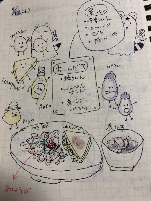 『9月12日(木曜日)ふわふわはんぺんサンドと焼うどんのワンプレート』