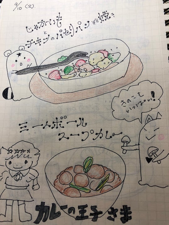 『9月10日(火曜日)じゃがいもとチキンのパン粉焼き☆ミートボールでスープカレー』