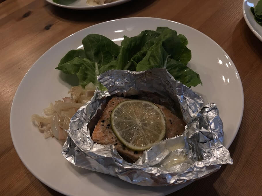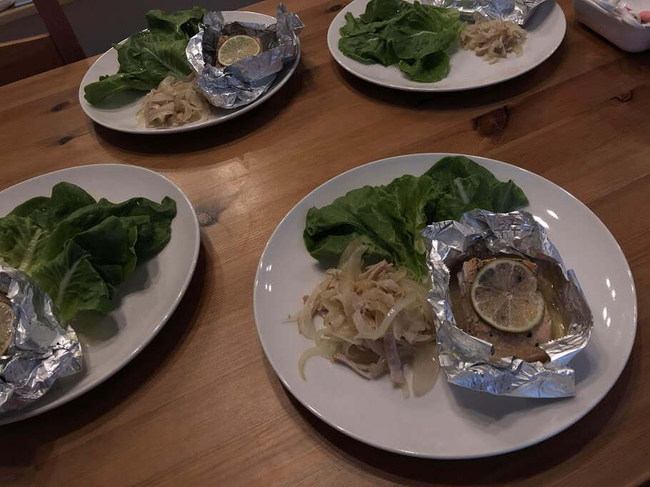 お刺身用サーモンブロックを使ってホイル蒸しに。